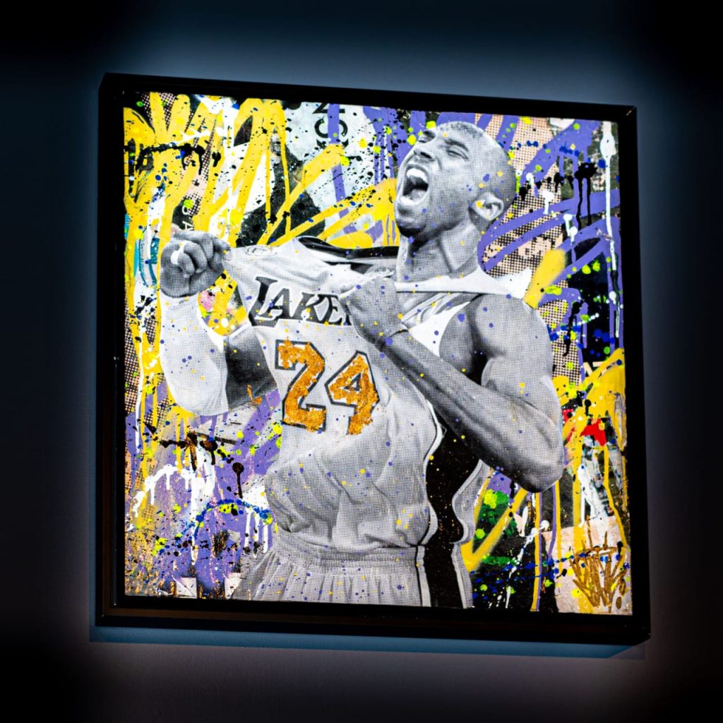 Seek One has built his name in the fine art community by developing 1 of 1 pieces that fuse iconic figures, vintage media, and street style together. The collaboration with One of None featured a mixed media portrait of the late Kobe Bryant, an outstanding and widely adored basketball player for the LA Lakers who unexpectedly died in January 2020. The one-of-a-kind piece, titled “24” after Bryant’s jersey number, was released this past June, for the One of None NFT NYC 2022 Hybrid Gallery. Despite “24” being Seek One’s first hybrid artwork, it was purchased just a few days after release.